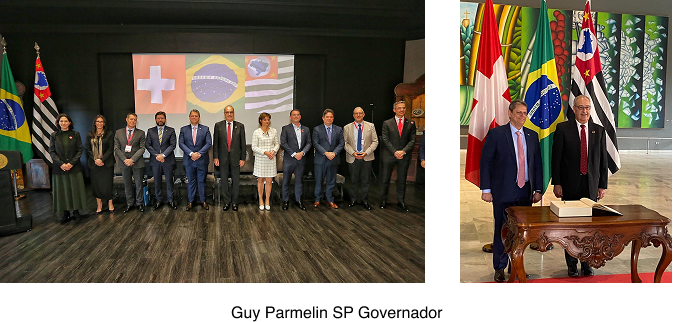 Em 2023, durante a visita do Conselheiro Federal Guy Parmelin ao Brasil, à frente da maior delegação oficial suíça que já visitou o país (mais de 140 participantes das áreas da ciência e dos negócios), foi assinado um MoU (Memorando de Entendimento) para fortalecer as relações bilaterais entre a Suíça e o Estado de São Paulo, com foco na economia, tecnologia, inovação e sustentabilidade.